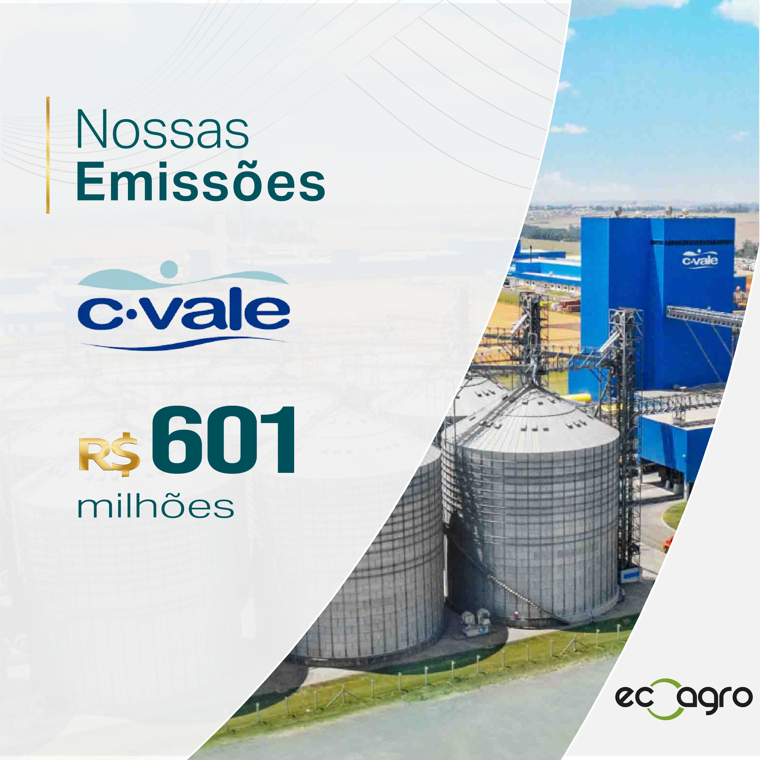 A Ecoagro anuncia a 417ª emissão de CRA, no valor de R$ 601.405 milhões, estruturada ao lado da C.Vale.
